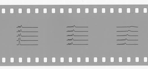 Figure 2. A 35 mm film strip showing Morse wave functions for the 15 vibrational levels of H2 over the range -0.6 < (r-re) < 4.4 Angstrom; the final composite diagram is Figure 1 of Reference 20.