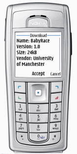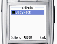 Alternatively visit www.d60.org.uk/BabyRace.jar from a PC and copy the BabyRace application to your mobile according to your phone's instructions