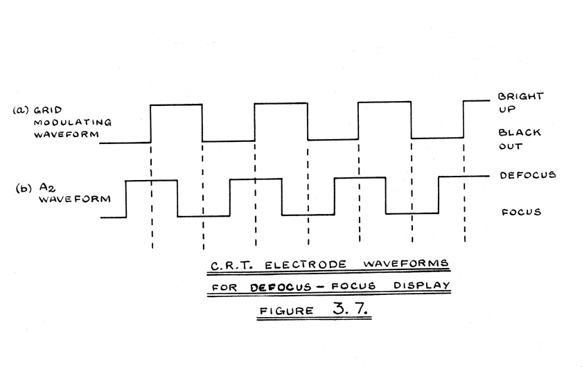 The sweep required for focus-defocus storage pauses during the dash period, and is achieved as above by using the dash waveform instead of the dot waveform.